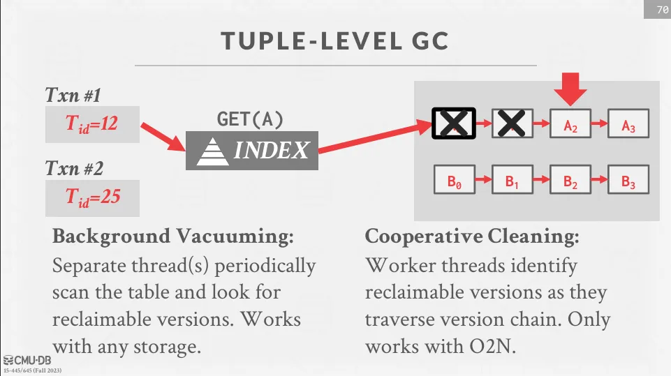 Tuple-level GC 通過直接檢查元組來檢查舊版本的資料,有兩種常見的方式 :
