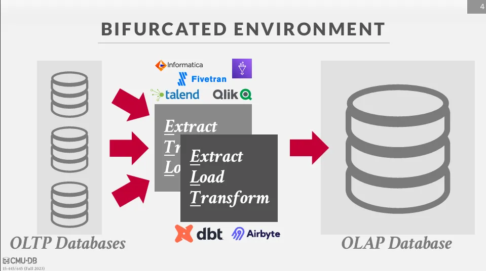 OLTP 資料庫中的資料會通過一些流程將資料轉移到 OLAP 資料庫中,主要有兩種方式 :