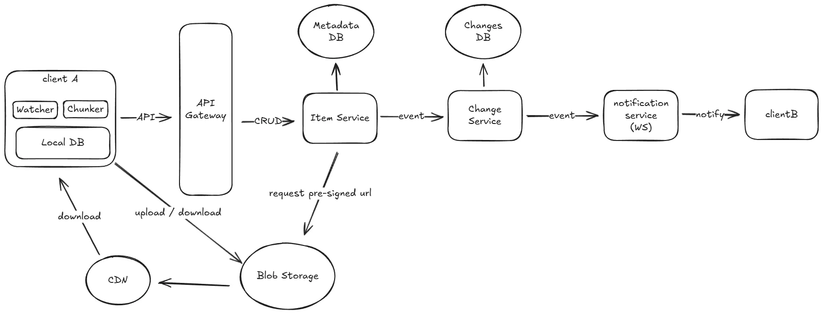 GET /api/items/{item_id}/versions/{version_number}請求到後端,後端會回傳需要的 chunk 的 access URL - 客戶端使用 access URL 下載 chunk,並在本地合併成完整的檔案