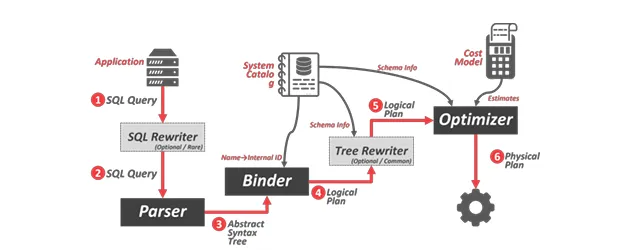 接著這個 AST 就會交給 binder,binder 的作用是透過 Catalog 將 AST 中的名稱綁定到實際的資料庫物件上。
