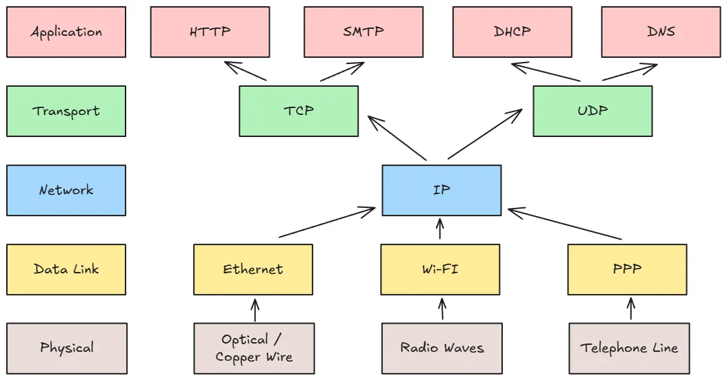 分層設計就是網路系統中用來實現模組化的方式。 透過將網路功能劃分為多個層次,每層可以專注於特定的任務,並且只與相鄰的層進行互動,簡化設計和實現過程。 同時,使用者也可以選擇適合自己的協議來實現各種功能,來最大化系統的效能。