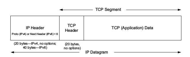 對於 IP header 來說,IPv4 的標頭大小最小為 20 bytes,可以依據 IHL 欄位增加選項欄位,最大可達 60 bytes,IPv6 的標頭大小則為固定 40 bytes。 而 TCP header 同樣最小為 20 bytes,可以依據 Data Offset 增加欄位,最大可達 60 bytes。
